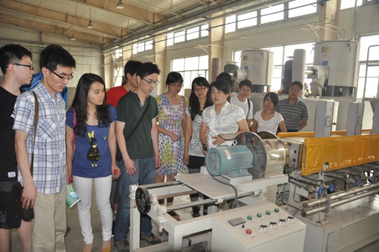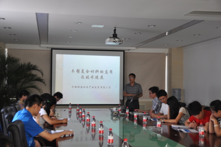 在本次参观交流过程中,毕业于北京林业大学森林资源保护与游憩的华新绿源公司市场部经理苑杰首先对北京林业大学母校校友的参观表示了热情欢迎,并对公司的发展情况进行了简单的介绍。随后公司技术部的工程师对于木塑生产工艺流程进行了题为《木塑复合材料的应用及技术进展》专题报告,并介绍了木塑产品的市场推广情况。本支部的优秀博士生代表秦志永博士以题为《植物纤维增强生物可降解复合材料的研究》的研究报告进行交流,并针对国内外的进展向大家进行了深入浅出的报告。双方就木塑复合材料的技术难题、发展瓶颈等问题进行了热烈的讨论,并就实验室的基础科研与企业的工业化生产如何进行合作展开了探讨和交流。讨论结束后,工程师带研究生考察团成员现场观摩了木塑复合材料生产线和电子废弃物环保拆解处理流水线。经过工作人员详细的讲解和身临其境的感受,同学们对木塑产品的生产过程以及电子垃圾“变废为宝”的过程有了较全面的认识。