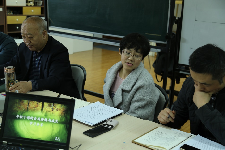 党委书记黄微以“年轻干部的自我修炼与成长”为题,分享了习近平总书记在全国组织工作会上讲话精神及文章《习近平:秘书工作的风范》学习体会。她谈到年轻干部应该“坚持走中国特色社会主义道路,坚定不移听党话、跟党走”、“加强学习、积累经验、增长才干,有足够本领”、“把当老实人、讲老实话、做老实事作为人生信条”、“做专业化、专门化、精细化的复合人才”、“强化实践磨练,经风雨、见世面、壮筋骨、长才干”。