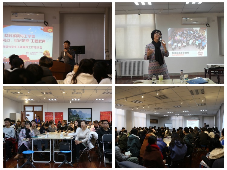 11月26日,我院召开“不忘初心,牢记使命”主题教育党团支委与学生骨干宣传工作研讨联学会。会议旨在以主题教育为契机,深入贯彻全国宣传思想工作会议精神,加强学院宣传工作。该研讨会邀请中国高校校报协会副理事长李铁铮教授担任主讲人,由我院牵头,与工学院共建联学。材料学院院党委负责人、工学院学生工作负责人、两院党团支部宣传委员及学生骨干参加会议。