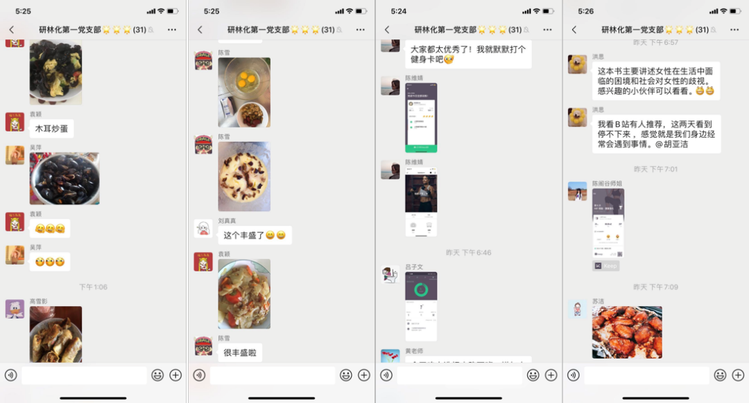 为了引导同学们加强时间管理,以更加健康、积极的状态迎接新学期,支部开展了“读书··健身·为家人做一份美食”健康打卡活动。支部书记和同学们一起,晒出自己为家人做的美食,个人健身打卡记录和读书(观影)心得。同学们用实际行动,在彼此的鼓励和监督下,养成健康生活习惯,形成科学日程安排,学会做时间的朋友,积极面对、沉淀积累、厚积薄发。