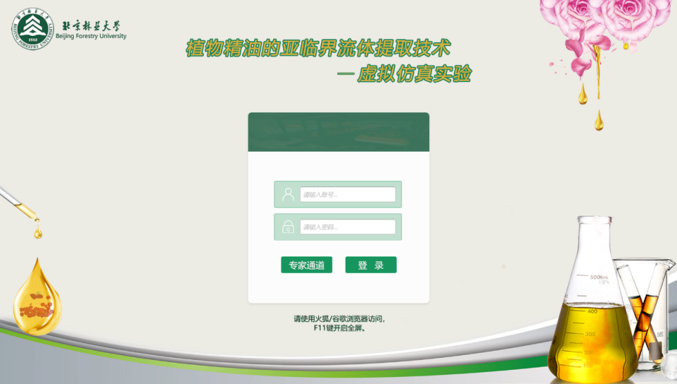 “林化综合实习”仿真实验登录界面